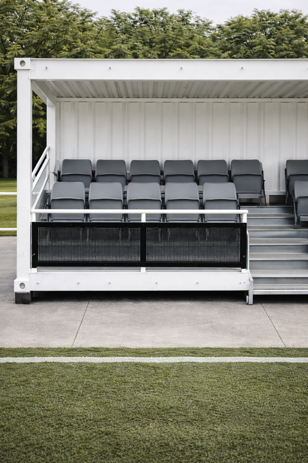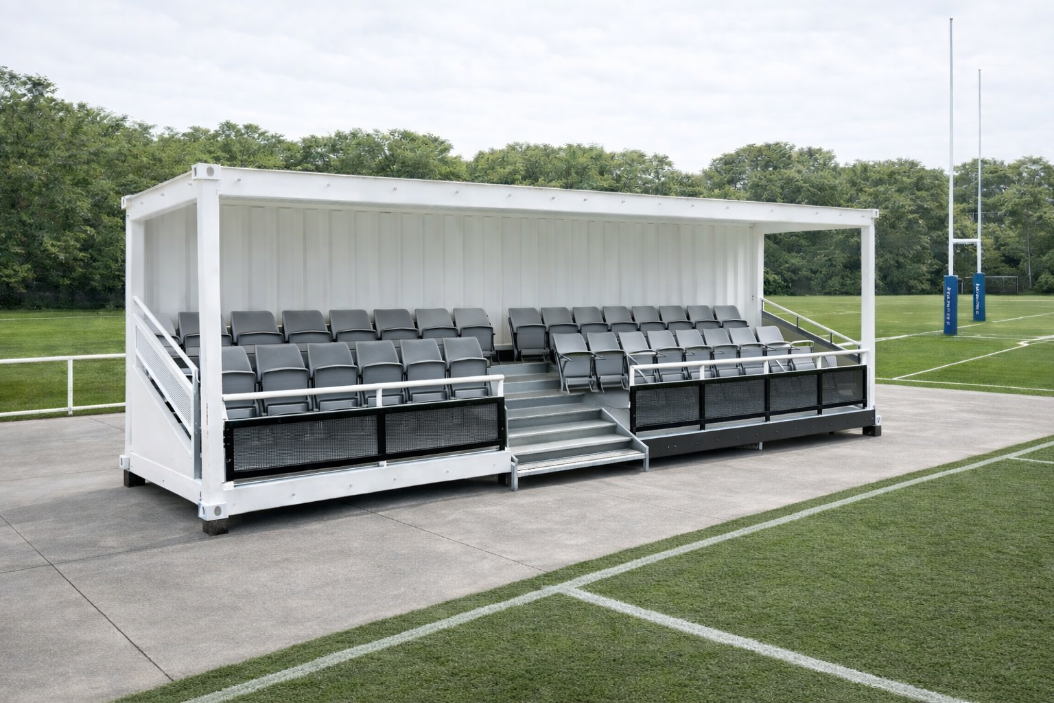 Modern, durable changing room units designed to meet athletes needs with safe storage spaces, electricity sockets, TV option, and enough space to get changed comfortably. Suitable for all year-round use thanks to insulation and optional heating systems.